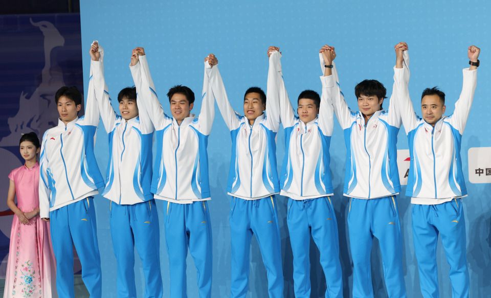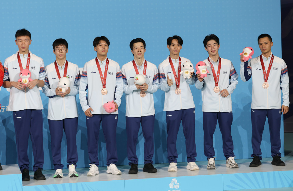 10月11日,季军湖南高速队队员在颁奖仪式上。新华社记者 卢汉欣 摄